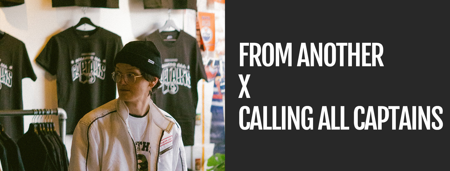 In 2025, From Another partnered with Edmonton pop punk band Calling All Captains for a collaboration to celebrate the band's hometown show. Looking to create a unique experience for their local fans ahead of a major headlining performance, the band teamed up with From Another to host an exclusive pre-show pop-up at our Edmonton location.